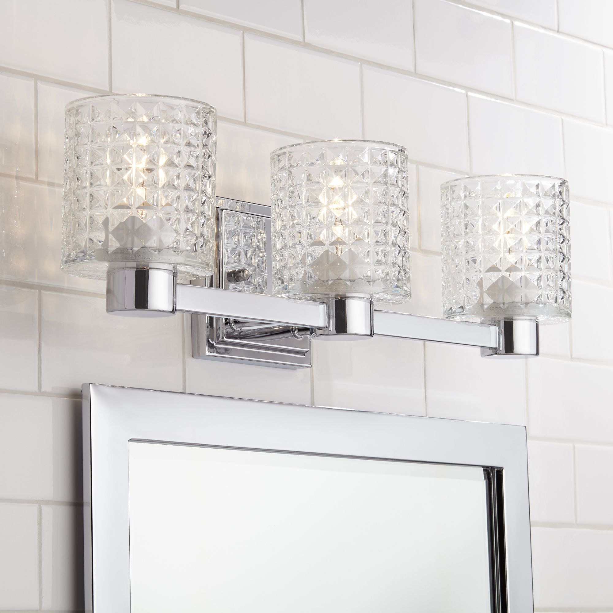 Modern Wall Light Chrome 22 3 Light Fixture Diamond Cut Glass