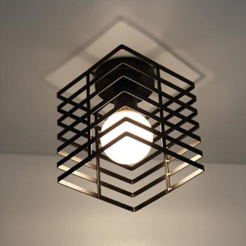 Vintage Led Ceiling Light Metal Cage Square Corridor Porch For